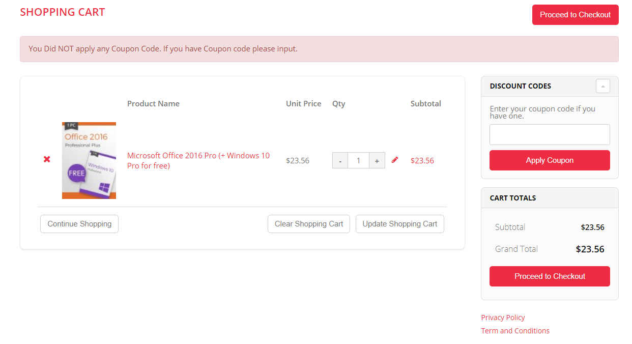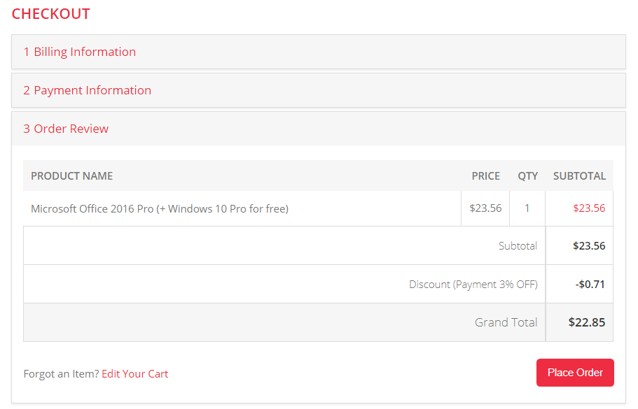 Процесс заказа на сайте KeysOff рассмотрим на примере лицензии на Microsoft Office 2016 Professional Plus за приобретение которой в подарок предусмотрена операционная система Windows 10 Professional. Цена по акции составляет 23,56 доллара.