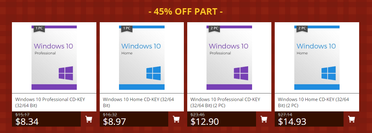 Сделать это можно со скидкой 45%, которую даёт промокод SINLE45. После его активации стоимость ключа на Windows 10 Professional будет снижена до 8,34 доллара. Покупка сразу двух лицензий выглядит ещё более привлекательной, учитывая то, что в таком случае средняя цена одного ключа составляет около 6,5 доллара.