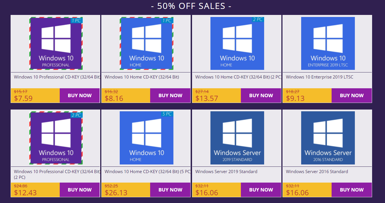 На этом новогодние предложения в магазине GoDeal24 не заканчиваются. С промокодом BFLE50 можно скинуть половину стоимости ключей на различные издания операционной системы Windows. Сейчас мы пройдёмся по каждом из них детальнее, а все цены и ссылки на страницу для покупки будут указаны в таблице в конце данного раздела.