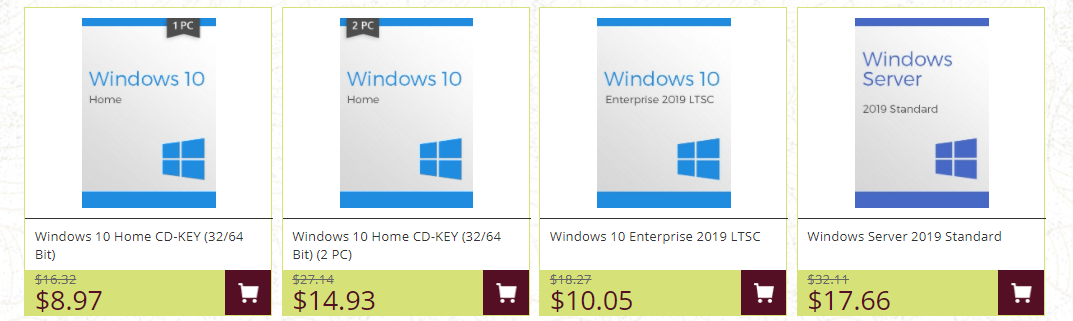 Здесь же предлагается операционная система Windows 10 Enterprise 2019 LTSC. Стоимость составляет по скидке чуть более 10 долларов. Четвёртое предложение – серверная ОС Windows Server 2019 Standard по цене почти 18 долларов.