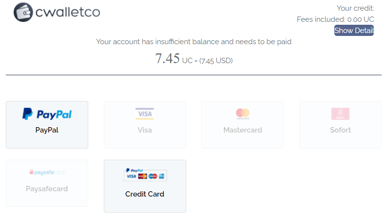 Для оплаты предусмотрено два пути: через сервис Cwalletco и напрямую с карт Visa или Mastercard. Если вы хотите оплатить свой заказ через платёжную систему PayPal, то выбирайте Cwalletco и в новом окне появится возможность выбрать PayPal.