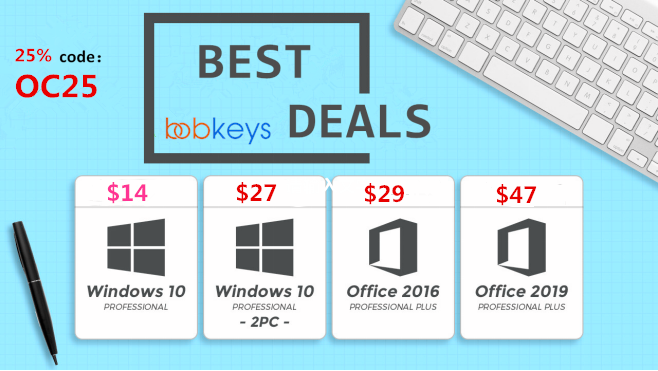 Интернет-магазин ключей для софта BOBKeys запускает распродажу выходного дня. Все клиенты магазина могут с дополнительной скидкой 25% приобрести ключи для операционных систем Windows 10 Professional / Home и для наборов офисного программного обеспечения Microsoft Office Professional Plus.
