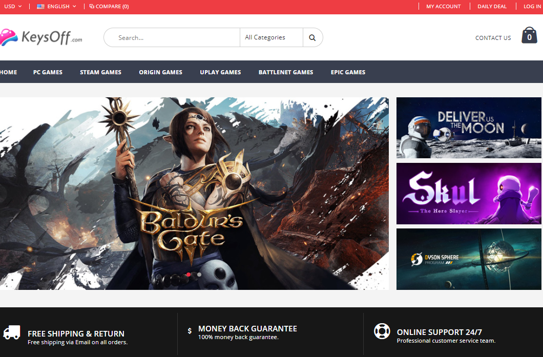 Прежде чем завершать статью разделом о том, как заказывать и оплачивать покупки в магазине KeysOff, рассмотрим весь ассортимент. В KeysOff вы можете приобрести ключи для игр с активацией через все самые известные сервисы, включая Origin, Steam и Epic Games Store.