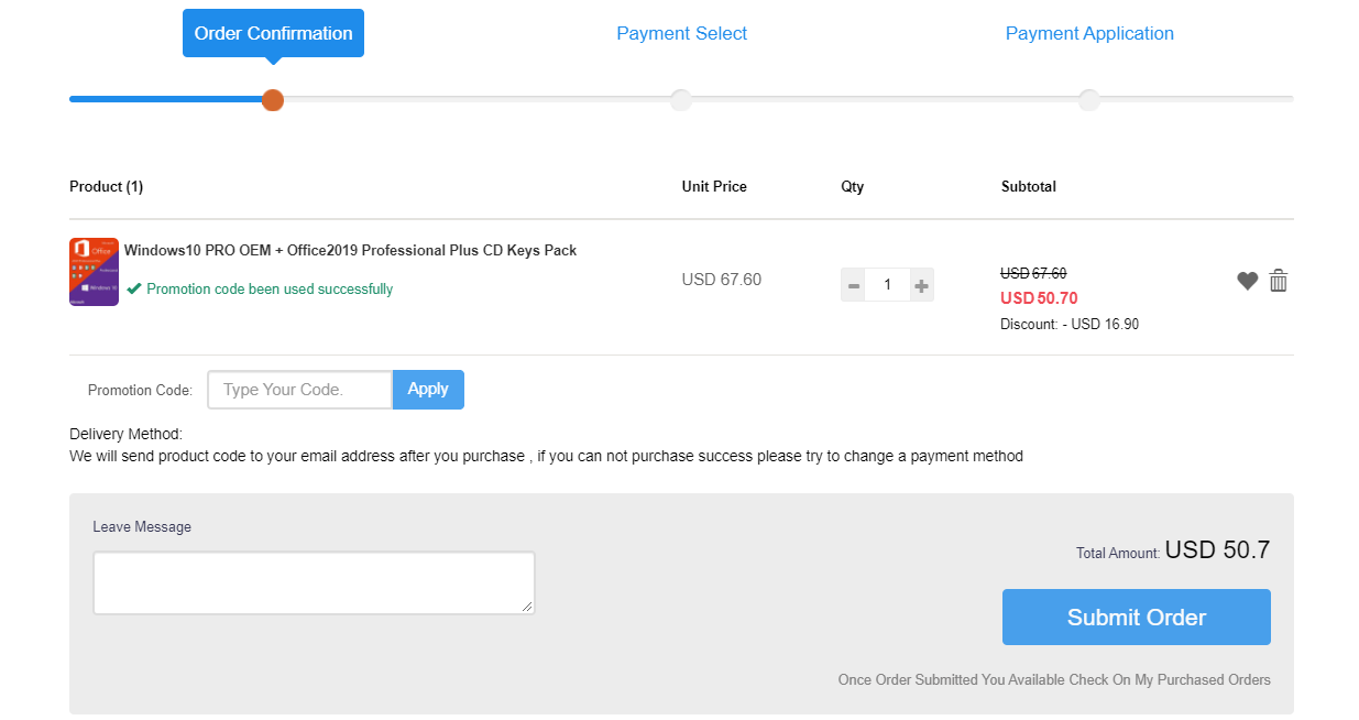 На скриншоте выше видно, что стоимость составляет почти 68 долларов с учётом 77-процентной скидки. Далее жмём Buy Now и отправляемся в корзину. Вводим промокод OC25 и получаем дополнительную 25-процентную скидку. В итоге цена набора упадёт до 50 долларов 70 центов.