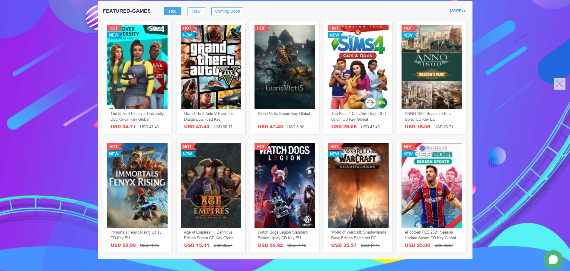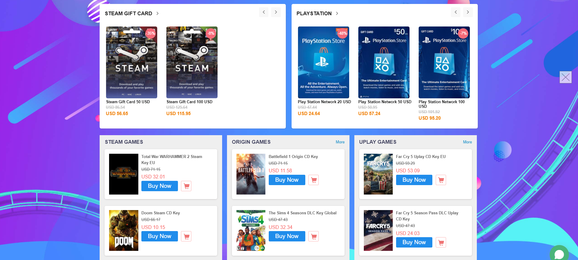 В категории Origin вы найдёте игры с активацией через соответствующий цифровой магазин. Например, за 50 долларов можно купить симулятор FIFA 20, FIFA 21 стоит на 5 долларов дороже, а также за эти деньги можно купить Need For Speed Origin.