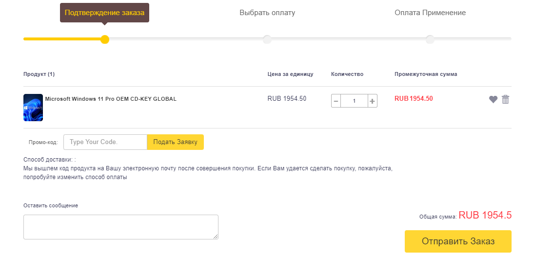 Оформление заказа давайте рассмотрим именно на примере Windows 11 Pro. Мы переходим на сайте SuperCDK по соответствующему линку, видим перечёркнутую стоимость 16 633 рубля 22 копейки и новую цену 1 954 рубля 50 копеек.
