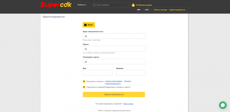 И давайте в конце материала всё же вкратце опишем процесс регистрации новой учётной записи, если вы хотите обзавестись личным аккаунтом в магазине SuperCDK.