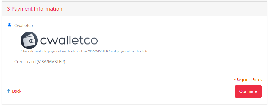 Третьи шагом выбираем сервис Cwalletco. Это нужно для того, чтобы потом иметь возможность оплатить через платёжную систему PayPal. Если же вы хотите рассчитаться с помощью карты Visa или MasterCard, можете выбрать на этом шаге соответствующую опцию.