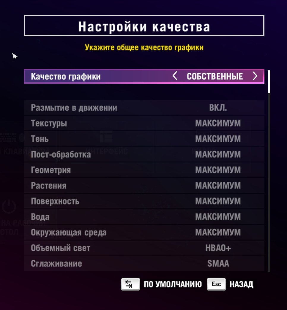 Начнём с максимальных настроек.