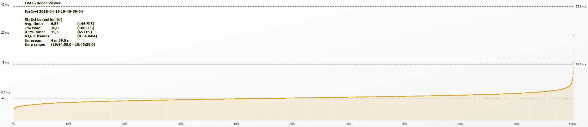 На мой взгляд, этих четырёх режимов вполне достаточно, чтобы рассмотреть все нюансы поведения ЦПУ в игровом приложении. Далее переходим к вопросам техническим. Конечно, максимальное количество информации по тестам в игре – это хорошо, но с другой стороны, а вся ли информация нужна? Это я к тому, что только на одну игру приходится 28 скриншотов, если показывать все результаты. Но ведь в тестировании будет далеко не одна игра, соответственно возникает мысль о том, что неплохо бы что-то сократить. Например, а нужна ли информация о активности SSD. Единственная игра, где я такую активность наблюдал – это Kingdom Come: Deliverance. В нормально сделанных играх SSD вообще бездельничает. Да и графики FPS и Кривой времени кадра, тоже не очень-то нужны.
