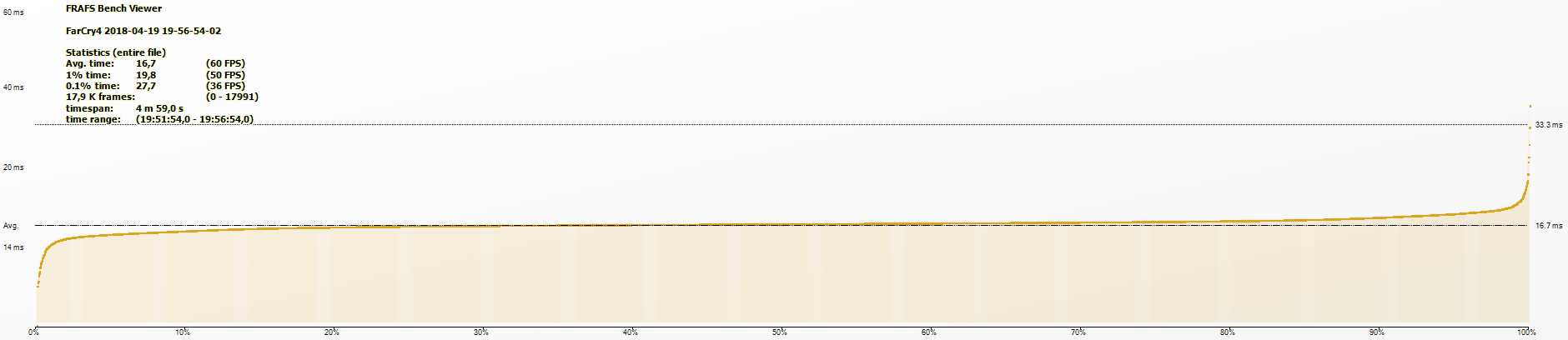 Максимальные настройки графики, вертикальная синхронизация включена. Этот режим позволяет оценить, насколько мы можем понизить нагрузку на процессор и видеокарту, без ухудшения качества картинки в игре. Для меня это имеет значение, потому как у меня полностью бесшумный компьютер, и соответственно в нём присутствуют определённые ограничения по нагреву.