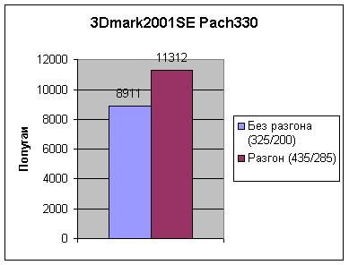Разгон без модификации системы охлаждения меня приятно удивил. Со стандартных 325 Mhg по чипу и 200 Mhg по памяти, мне удалось разогнать карту до 435/285 Mhg. При этом радиатор на VPU грелся не очень сильно, а вот об память можно было обжечь палец.