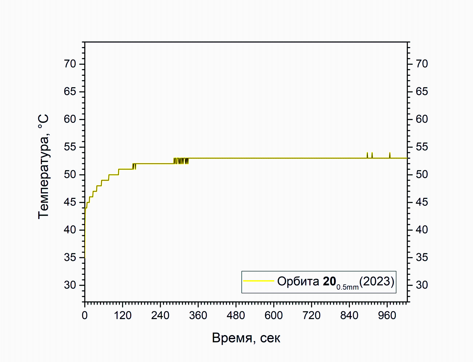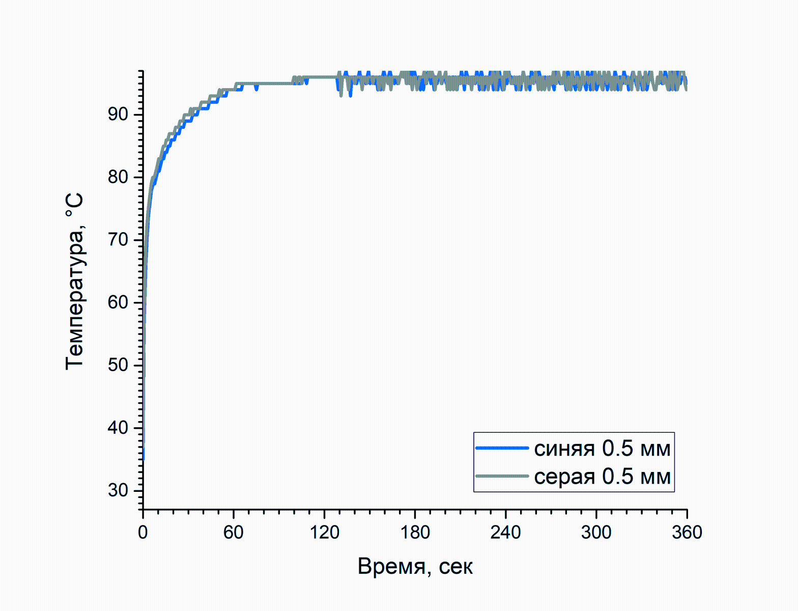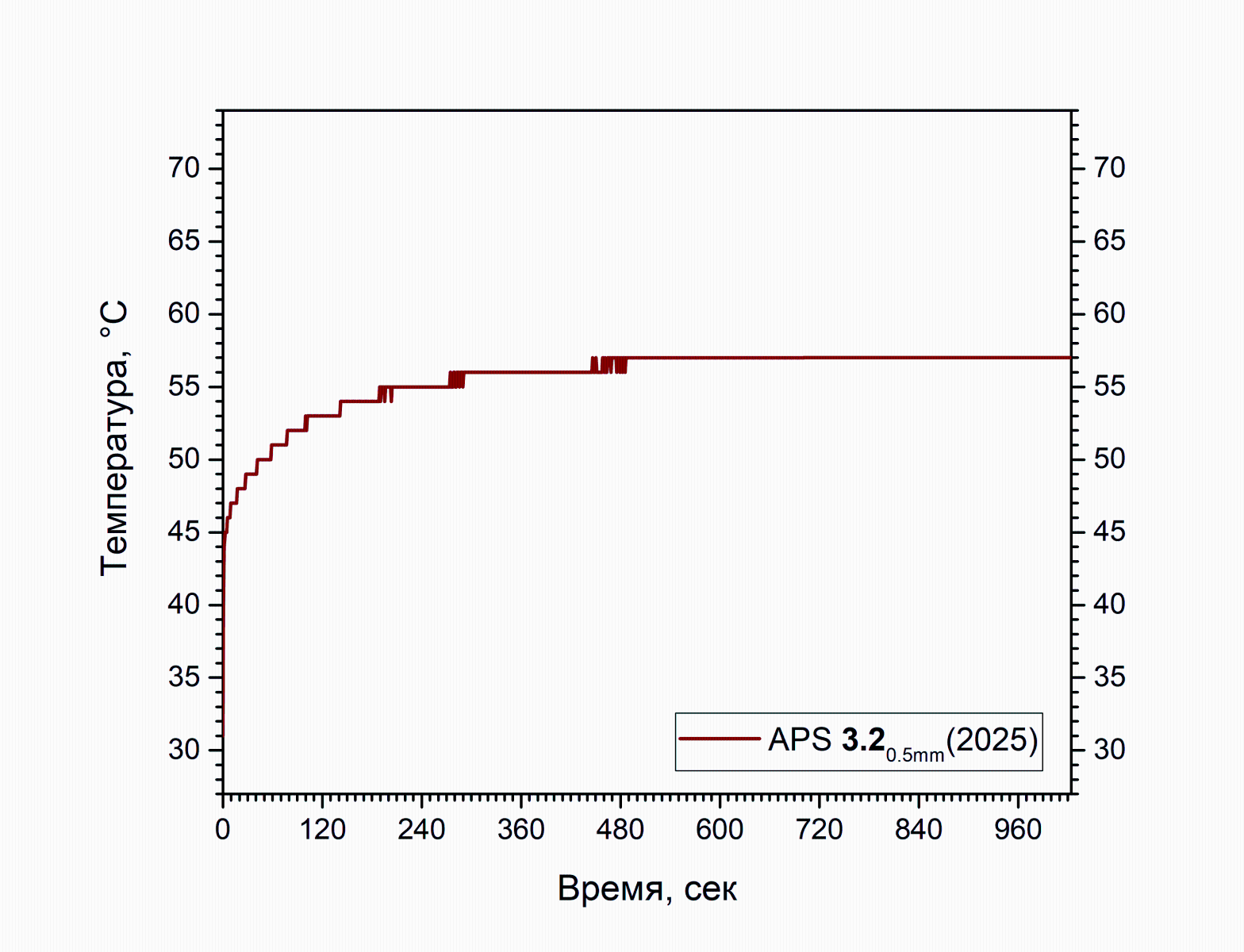Повторное нанесение и тестирование при тех же условиях дало сходный результат. Кривая была намеренно утеряна, чтобы не засорять исходники, температура снова не выбралась выше 50 градусов.