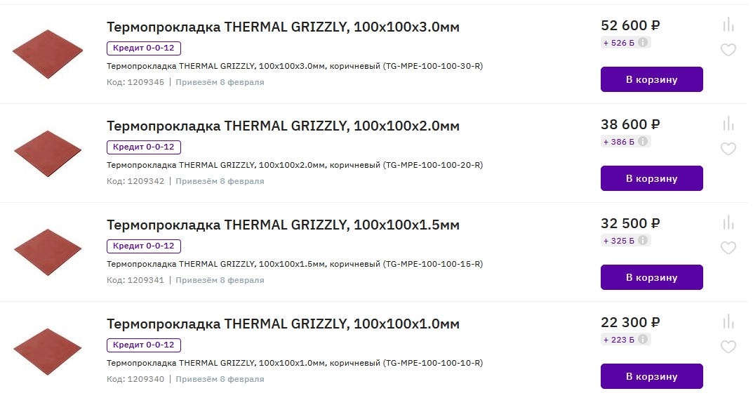 Судя по всему, на скриншотах "экстрим" (Thermal Grizzly Minus Pad Extreme), которую не тестировал, но стоимость верхней позиции с толщиной 3 мм, по данным на начало декабря 2025 года, составляет... 4550 рублей. Там же. Цена куда более адекватная - но всё равно очень дорого "за кусок резины", пусть и высокотехнологичной.