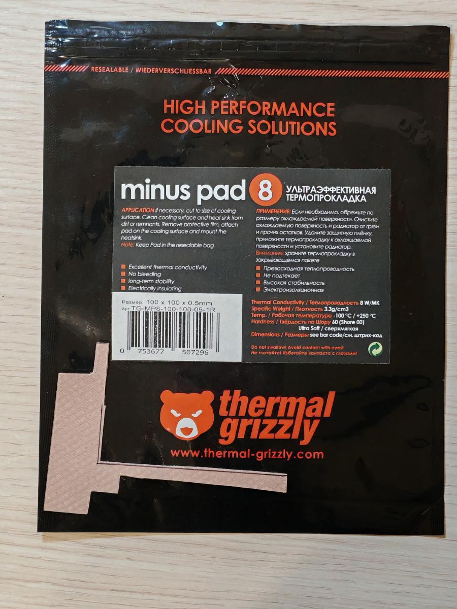 2.2. Thermal Grizzly Minus Pad 8 W/(m·K) 0.5mm (2018): "дорого-богато"