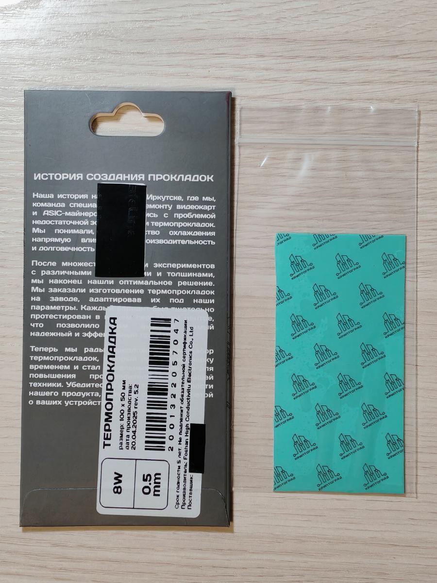 Информация на обратной стороне упаковки напоминает очередную "средневековую балладу" об "истоках" создания ведьмами и их бородатыми спутниками того или иного сорта крафтового пива в Иркутске... Ну что ж, молодцы, стараются ради тружеников добычи криптовалют, респект и уважуха. А что в реальности? Начнём с "младшей" версии. Фабричная упаковка, нестандартный зелёный цвет (красителя не пожалели), "разработано в Иркутске, сделано в Китае". Заявлена на маркетплейсе как 10 W/(m·K), промаркирована как 8 W/(m·K).