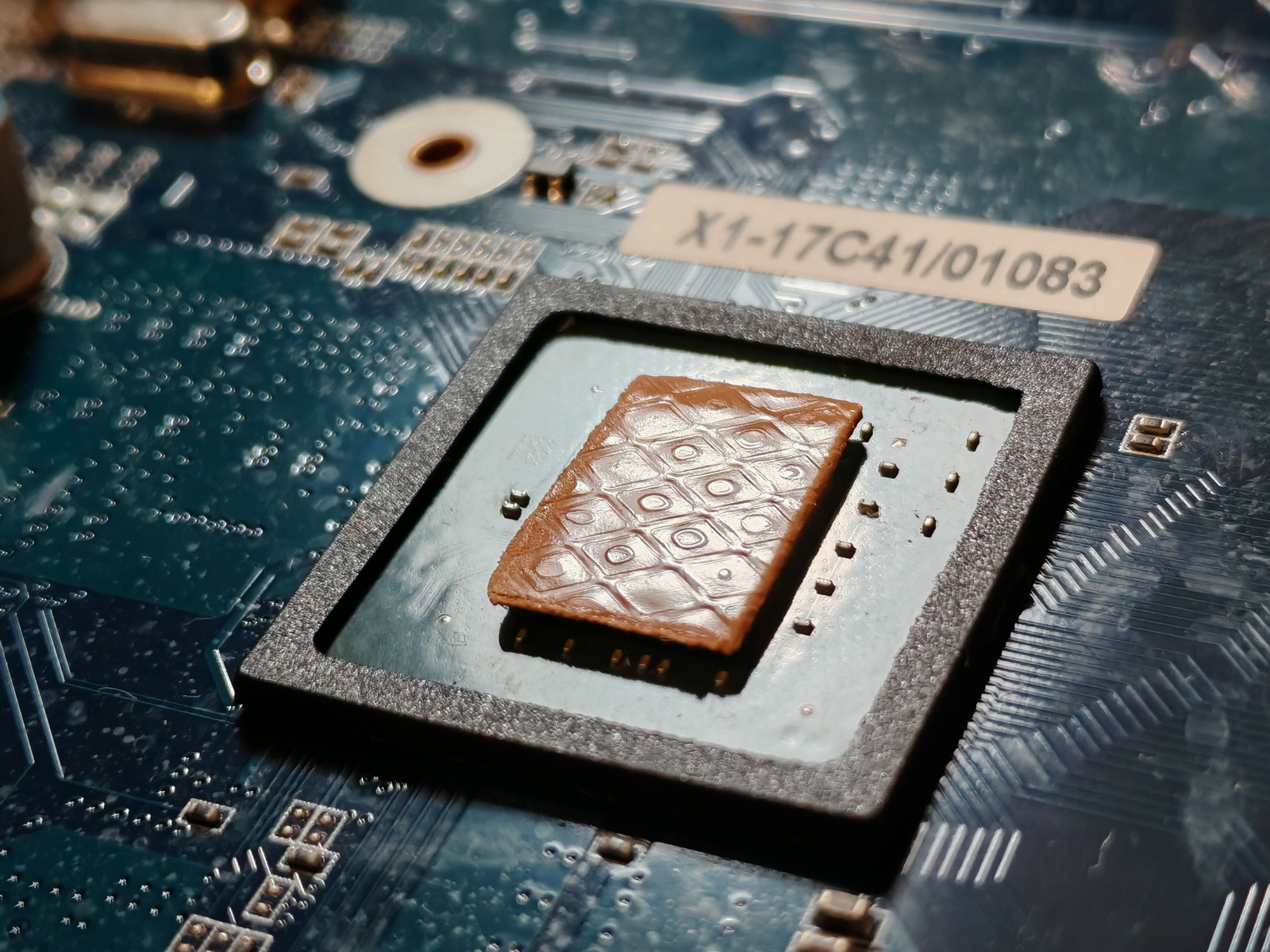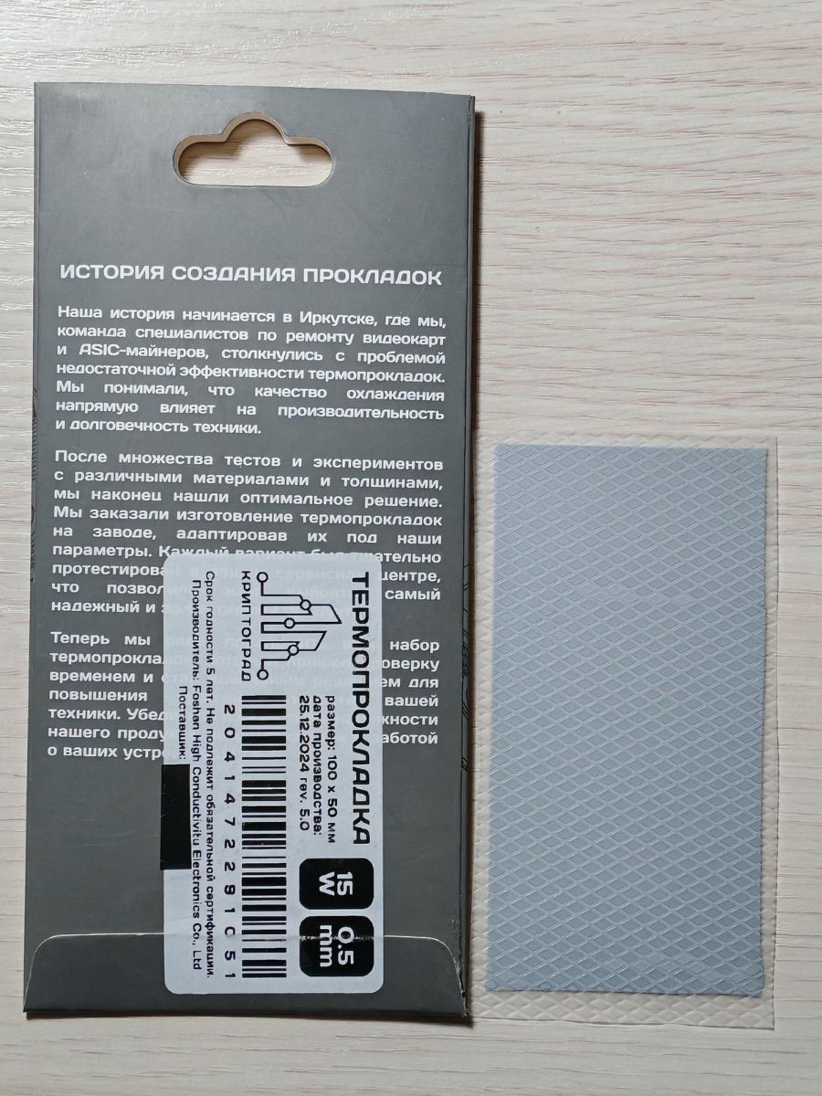 Отмечу, что эта прокладка представляет собой "не резину, а шпаклёвку", рвётся при снятии радиатора, потому при такой малой толщине очень сложна в аккуратном нанесении. А по причине своей малой упругости на сжатие - продавилась сильнее прежде протестированных экземпляров, но "дна" (соприкосновения видеочипа и основания радиатора) далеко не достигла. Цена "полного (100×100 мм) листа на момент покупки 658 рублей - нехило так, но заслуженно. Сейчас (в начале декабря 2025 года) та же товарная позиция стоит 427 рублей, что не может не радовать.
