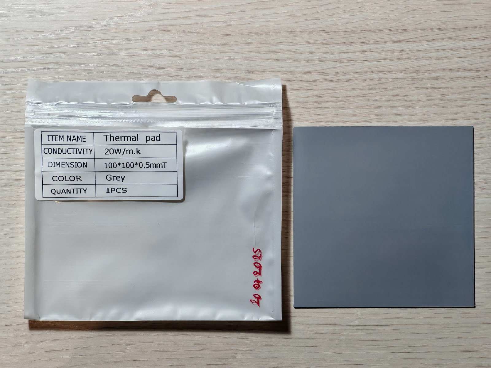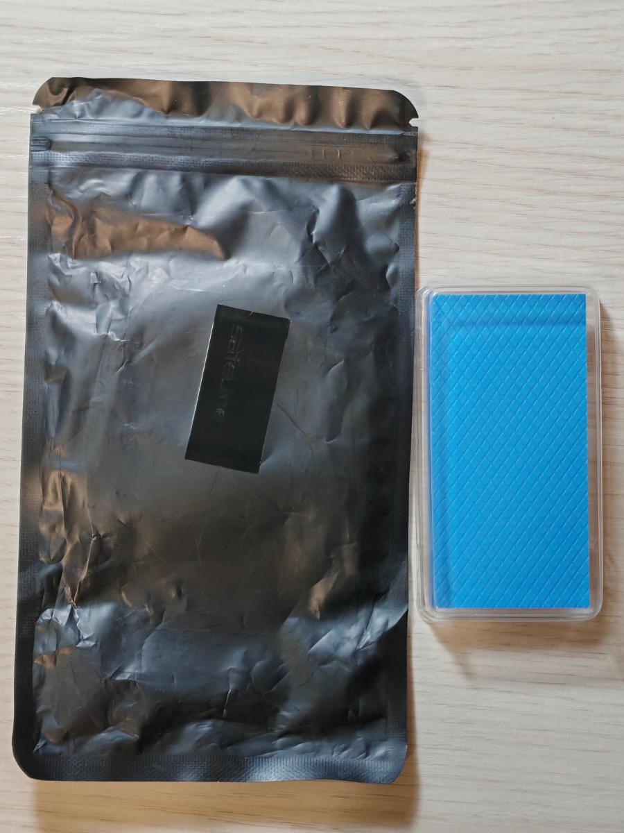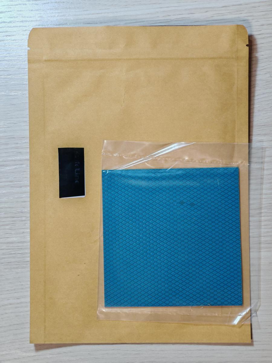 Очередные "тёмные лошадки" современного рынка. Упаковка кустарная, с типографской наклейкой, в оформлении минимализм как он есть, с отлично читаемым шрифтом. Эта прокладка имеет серый цвет, чуть желтоватый относительно предыдущего образца, выглядит неплохо. Однако по консистенции больше напоминает "резину", что внушает определённые подозрения в посредственной теплопроводности.