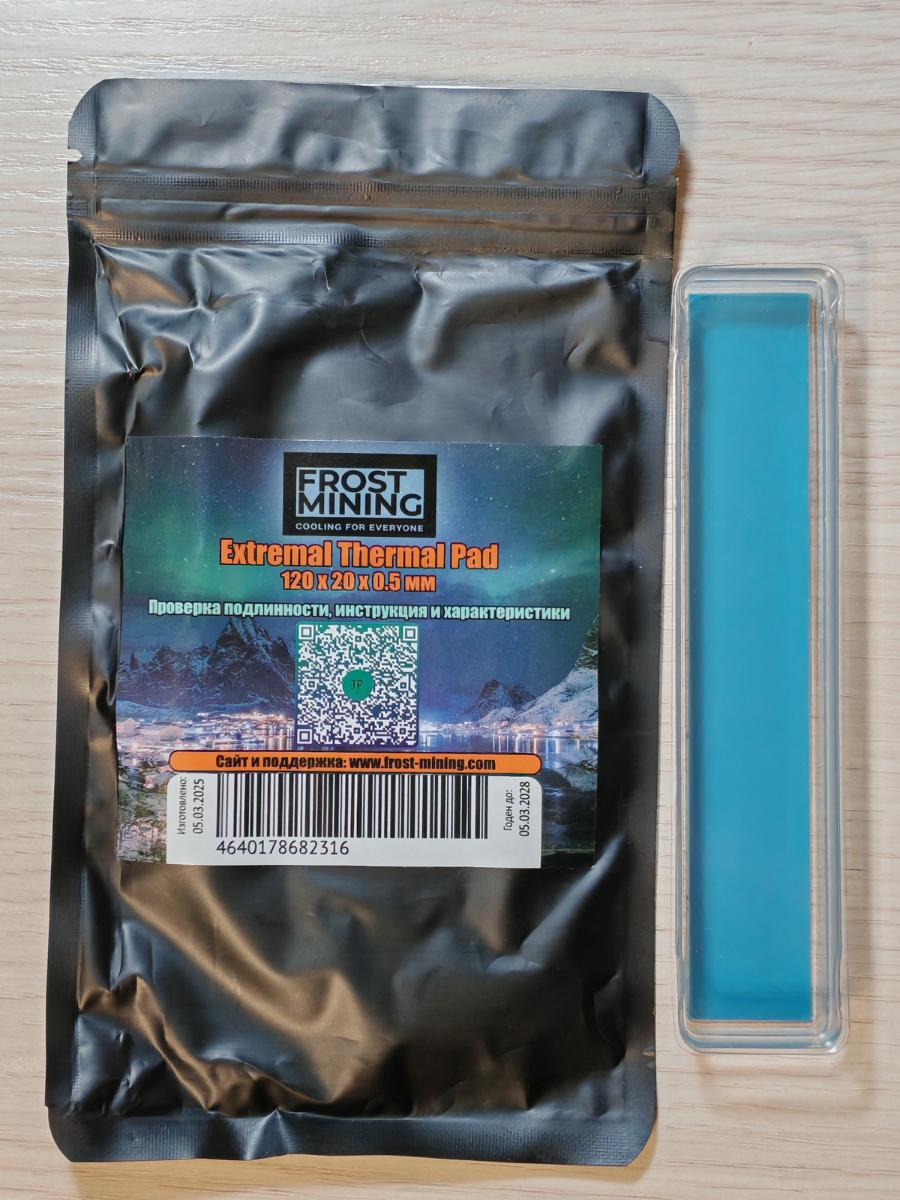 Так же стрёмно, пусть и получше. Однозначно нас разводят - но кто? Производитель? Бутлегеры? (Надеюсь что второе.) Максимальная температура 69 градусов, средняя температура 67.16 градуса. Такой же "экстремальный нагрев" как и у FrostMining Extremal V4 (пункт 5.8), даже хуже. И скорее "резина" по консистенции. Стоимость этого поделия на момент покупки (конец октября 2025) составила 737 рублей за лист 95×55 мм, сейчас (начало декабря 2025) стоит столько же в том же месте. В пересчёте на "полный" (100×100 мм) лист это 1411 рублей. Иные "там же" предлагают именно 100×100 мм лист за 2300 рублей и дороже при той же толщине. Очень хочется надеяться, что это подделка - покупалась не по прямому назначению, а для тестирования, и рекомендовать её никуда не буду. И, по возможности, хочется сравнить со 100% оригиналом по своим связям, авось у кого завалялась (как и предыдущая в исполнении на 0.5 мм). Не может 100% оригинал дорогого качественного изделия глобальной торговой марки так себя вести!