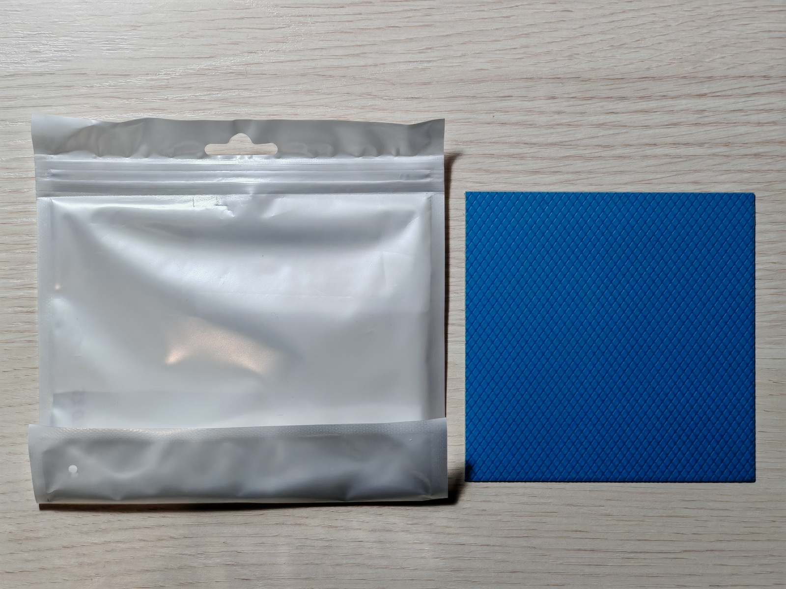 Всё так же - кустарная упаковка, фирменная типографская наклейка, двухслойный пластиковый контейнер. Цвет голубой (темнее чем у Arctic Thermal Pad 6), на карточке товара он яркий сине-зелёный для привлечения внимания.