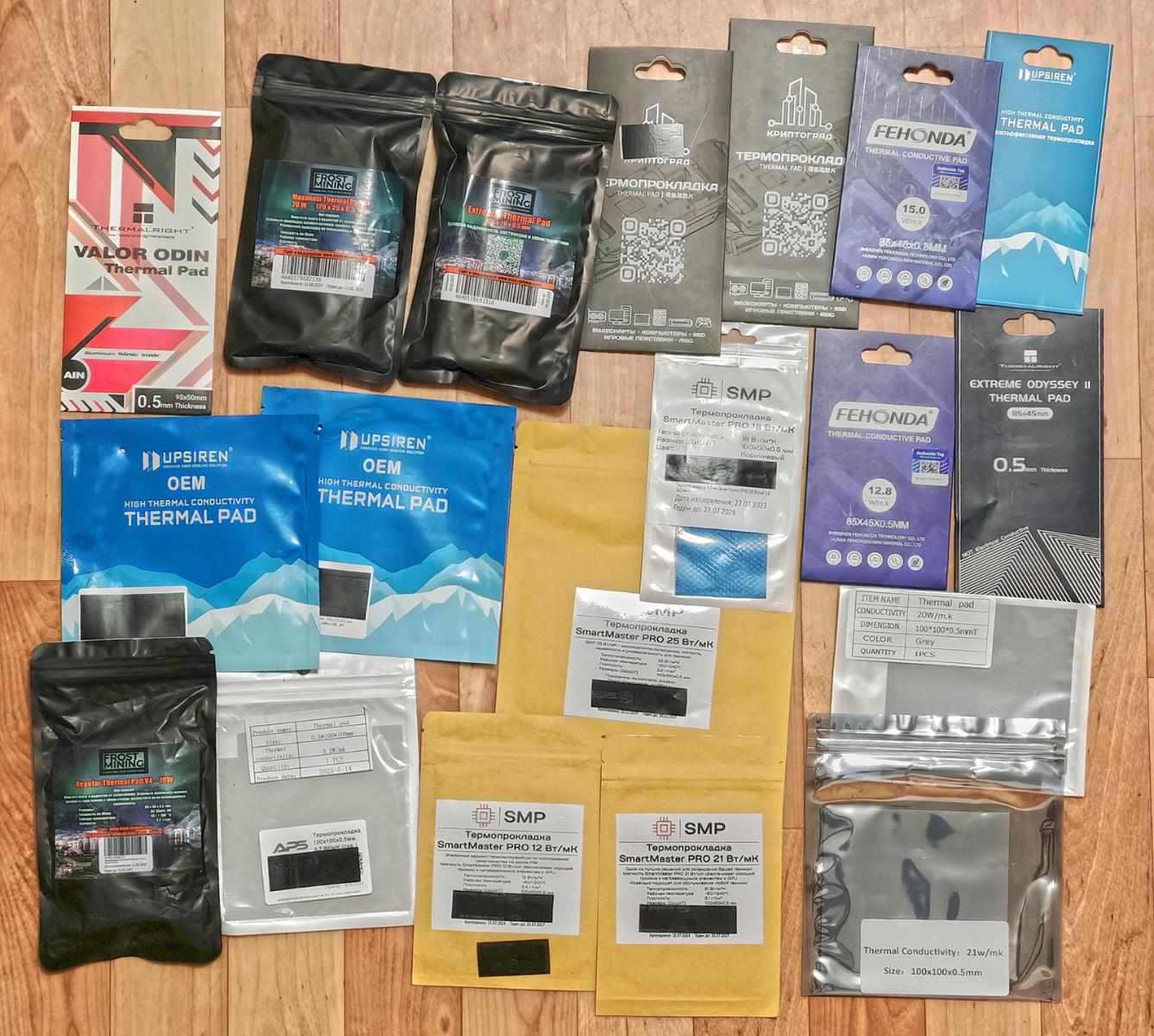 Как выше было сказано - даже такого грубоватого их тестирования я не нашёл на просторах Интернета, потому решил сделать своё в те дни, когда был юридически освобождён от посещения рабочего места. Общие траты именно на новые (купленные осенью 2025 года) термопрокладки составили 5896 рублей, всё без спонсоров, за свой счёт, на голом энтузиазме, так как и самому было интересно, и другим с выбором по возможности помочь. И далее по списку. Стабильной вам теплопередачи!