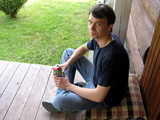Я всё пью пивко, targitaj читает этикетку Клинского, а Наталья с интересом изучает мои кроссовки.