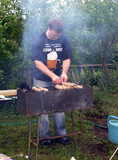 Наталья помогает noname-Ask'у снять мясо с шампуров.