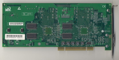 Получилось так, что на выходных я поехал на радиорынок за мультиметром и увидел на лотках с б/у комплектухой VooDoo 5500 PCI. Я не смог пройти мимо такого раритета и после непродолжительного торга (сошлись на 40$) вместо мультиметра стал владельцем самой быстрой видеокарты 3dfx (существующая только в виде [нескольких сотен?] инженерных семплов четырехчиповая VooDoo 6000 не считается), первой видеокарты с разъемом допольнительного питания, и одновременно единственной относительно массовой игровой двухчиповой видеокарты.