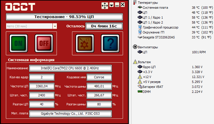 P.S. Нагрузка бралась под 15 минутным прогоном ОССТ, данные отслеживались программой EVEREST Ultimate Edition v.4.20.1222