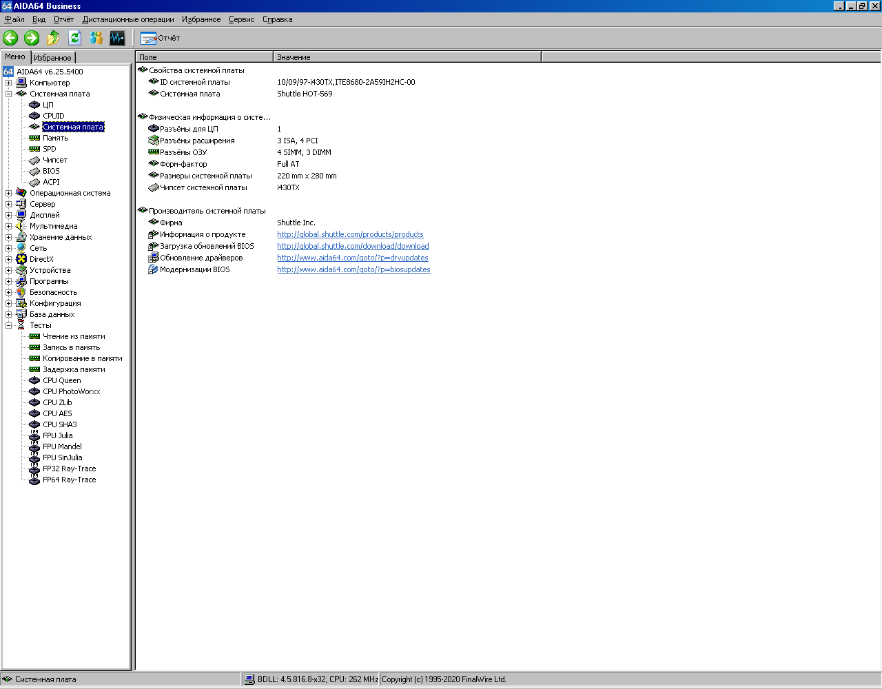 Немного общих сведений о платформе по версии AIDA64.