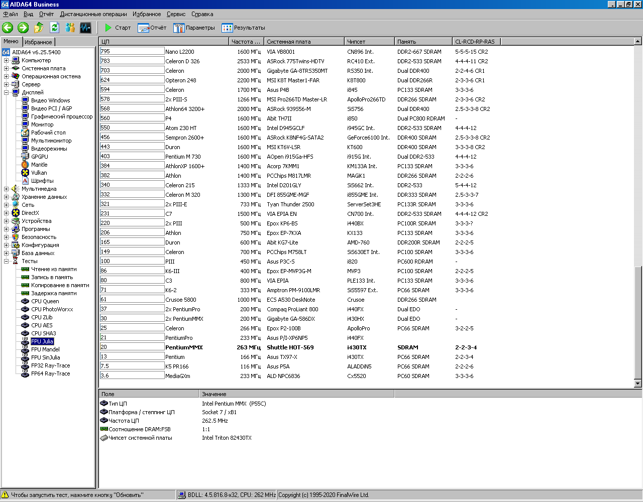 Результаты тестирования Pentium 233(266)MMX в Final Reality