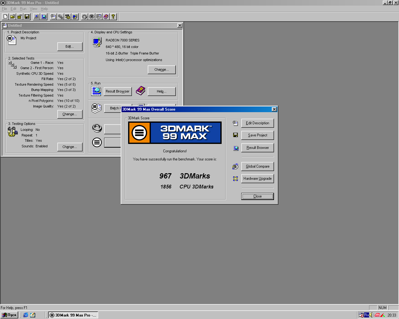 Результаты тестирования Pentium Pro 200(233) в 3DMark99
