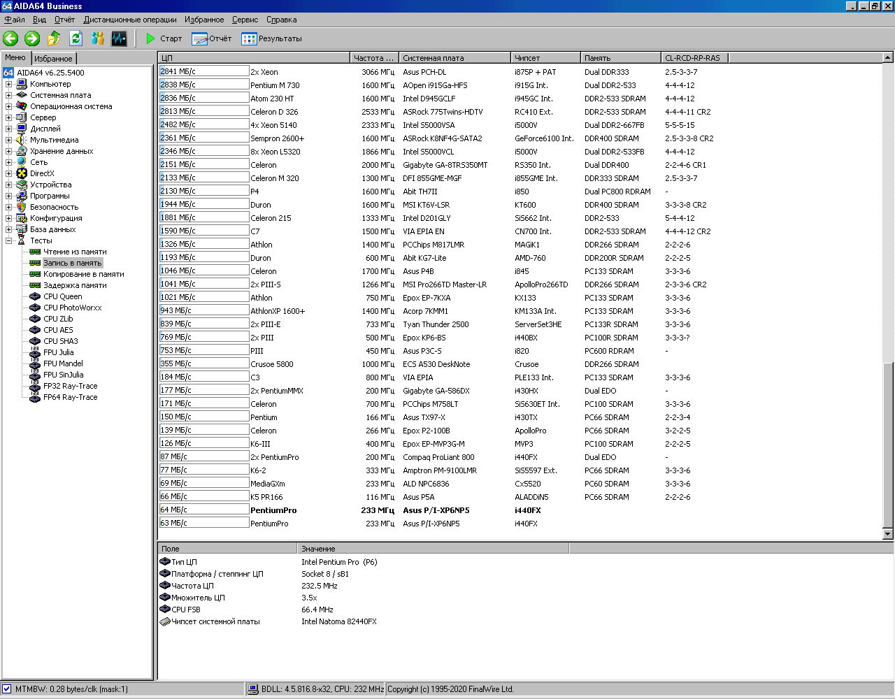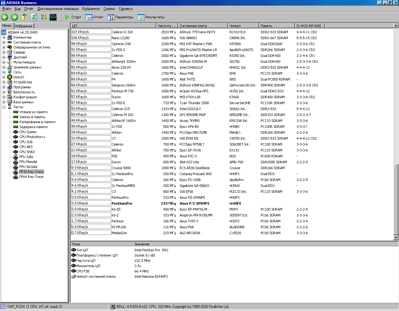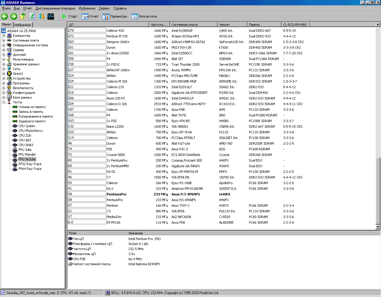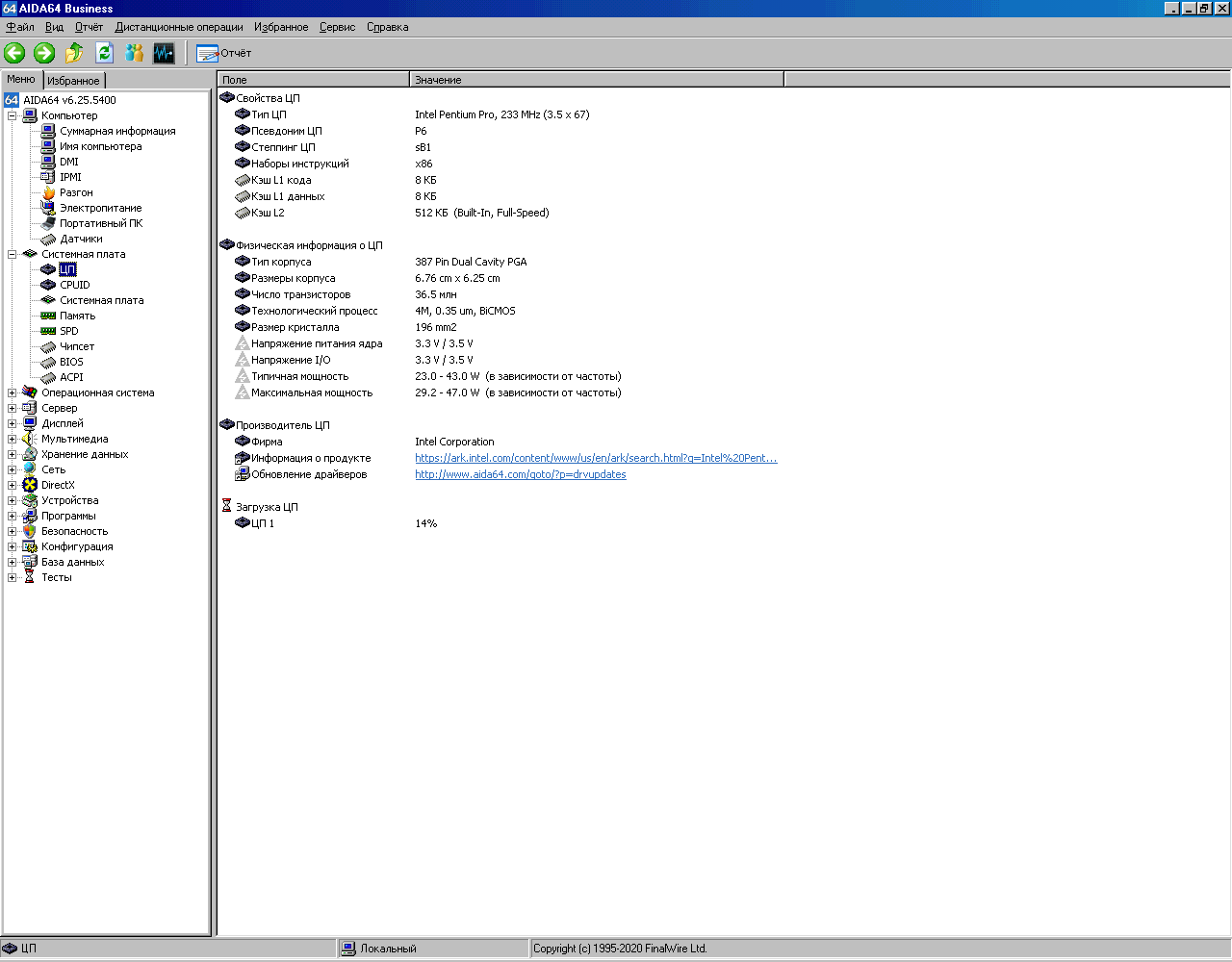 Вот теперь системник выглядит вполне аутентичноНастало время для тестов. Запускаем AIDA64, в которой сохранены результаты тестирования этой системы с процессором, имеющим 256Кб кэша. Под спойлером можно найти все скриншоты.