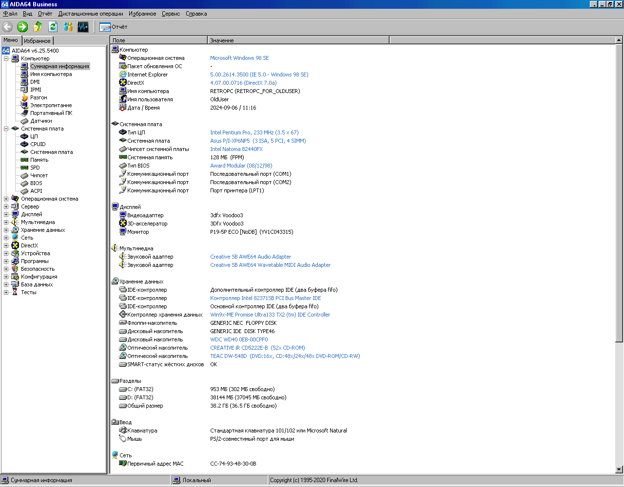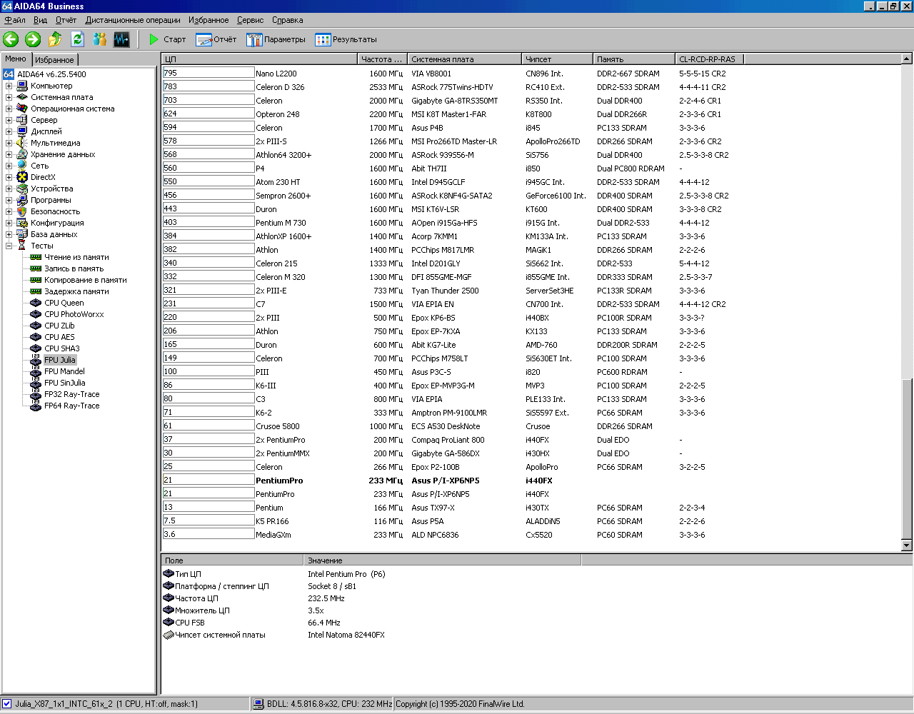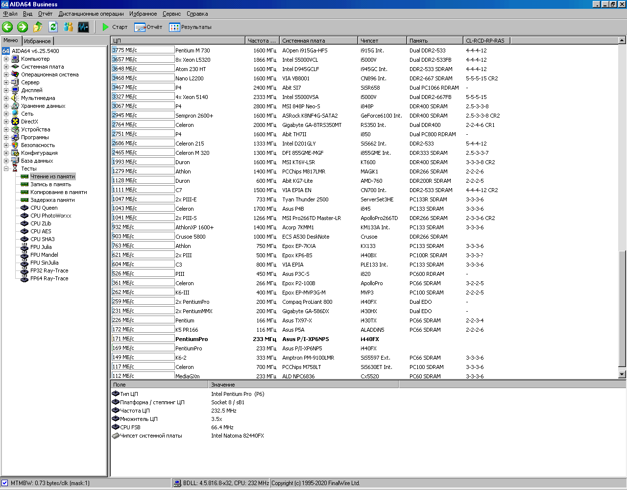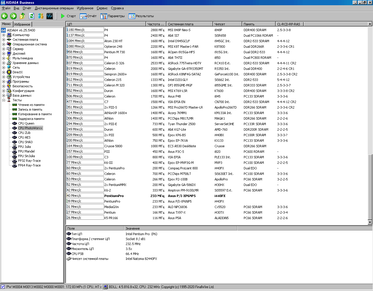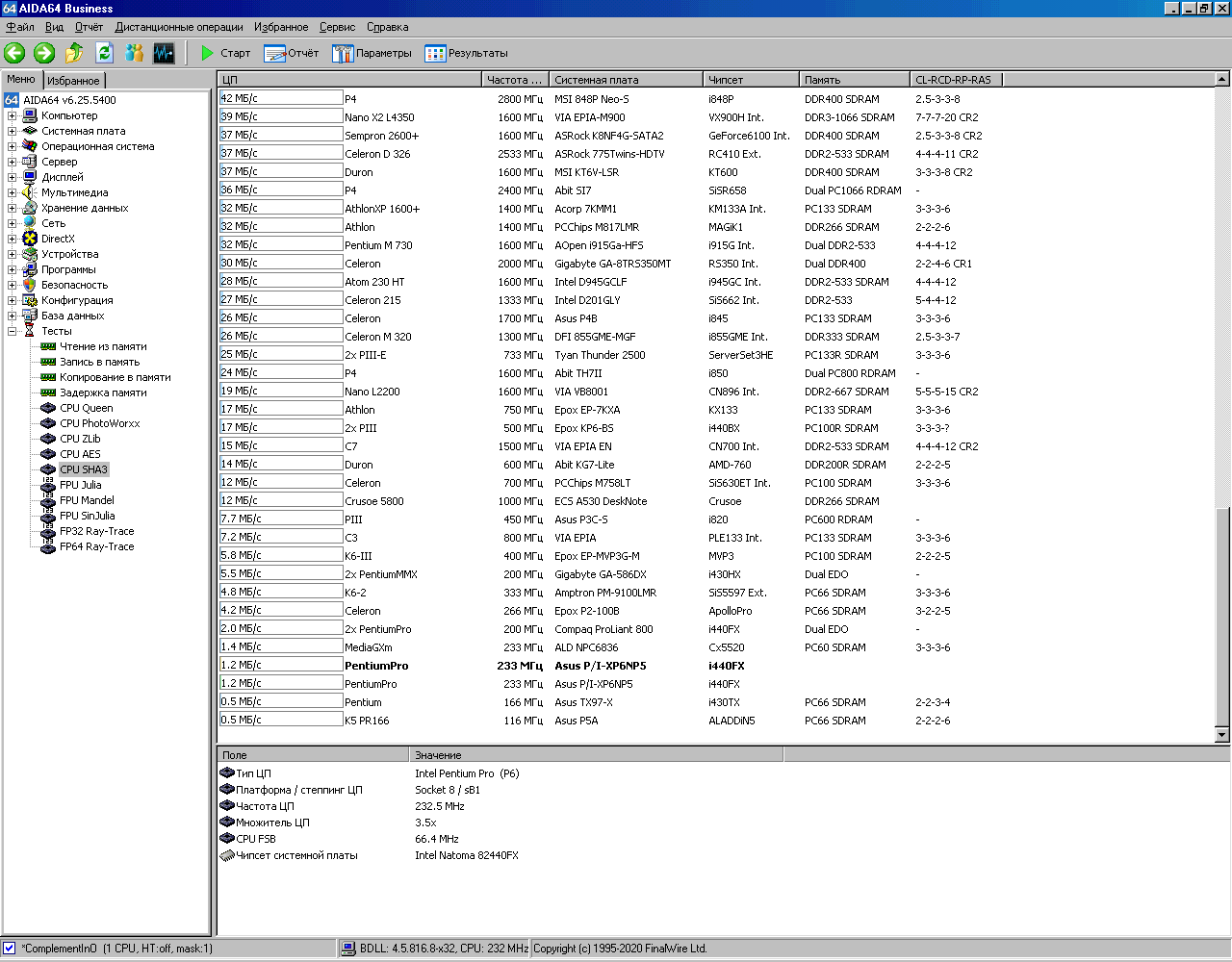 Вот теперь системник выглядит вполне аутентичноНастало время для тестов. Запускаем AIDA64, в которой сохранены результаты тестирования этой системы с процессором, имеющим 256Кб кэша. Под спойлером можно найти все скриншоты.