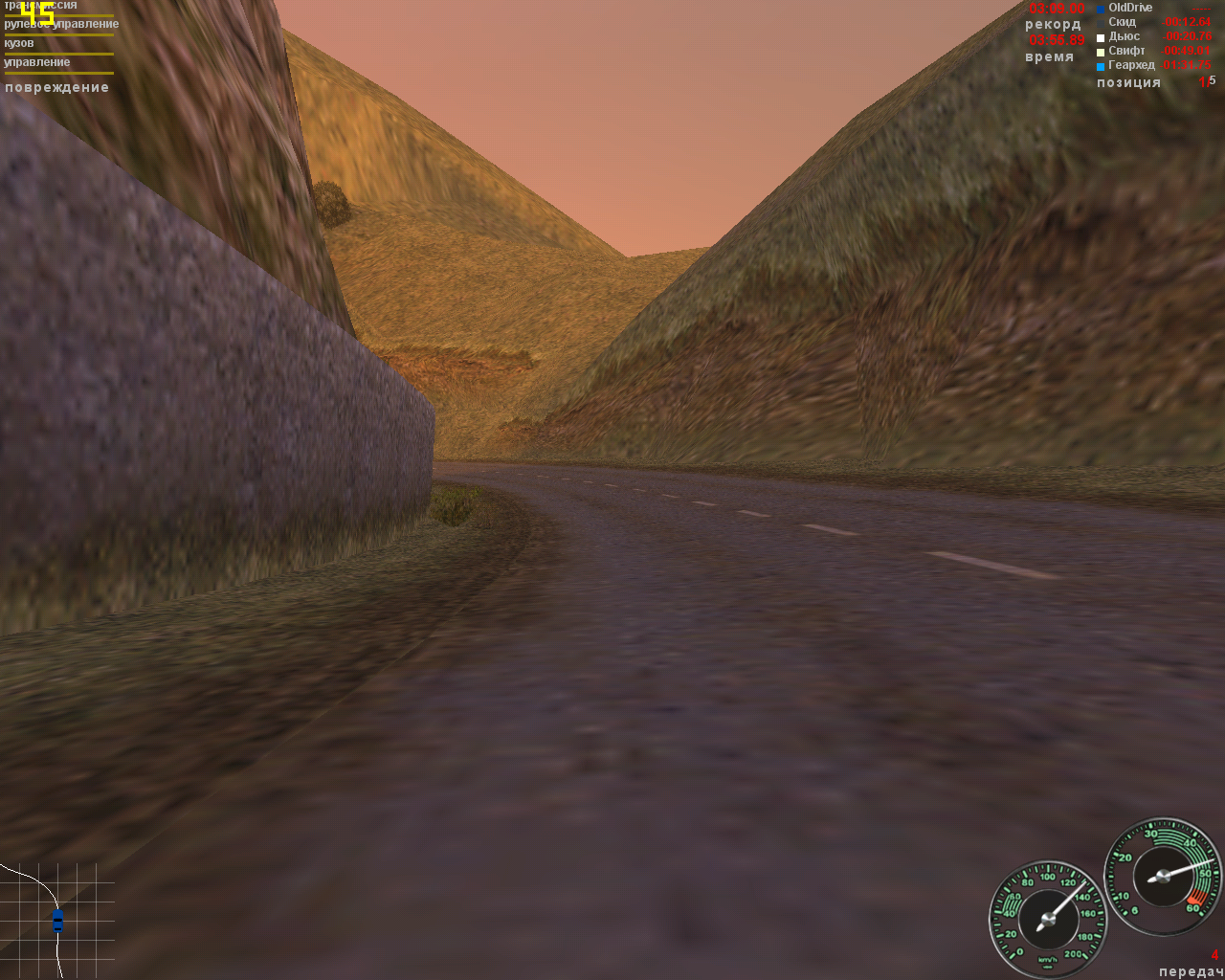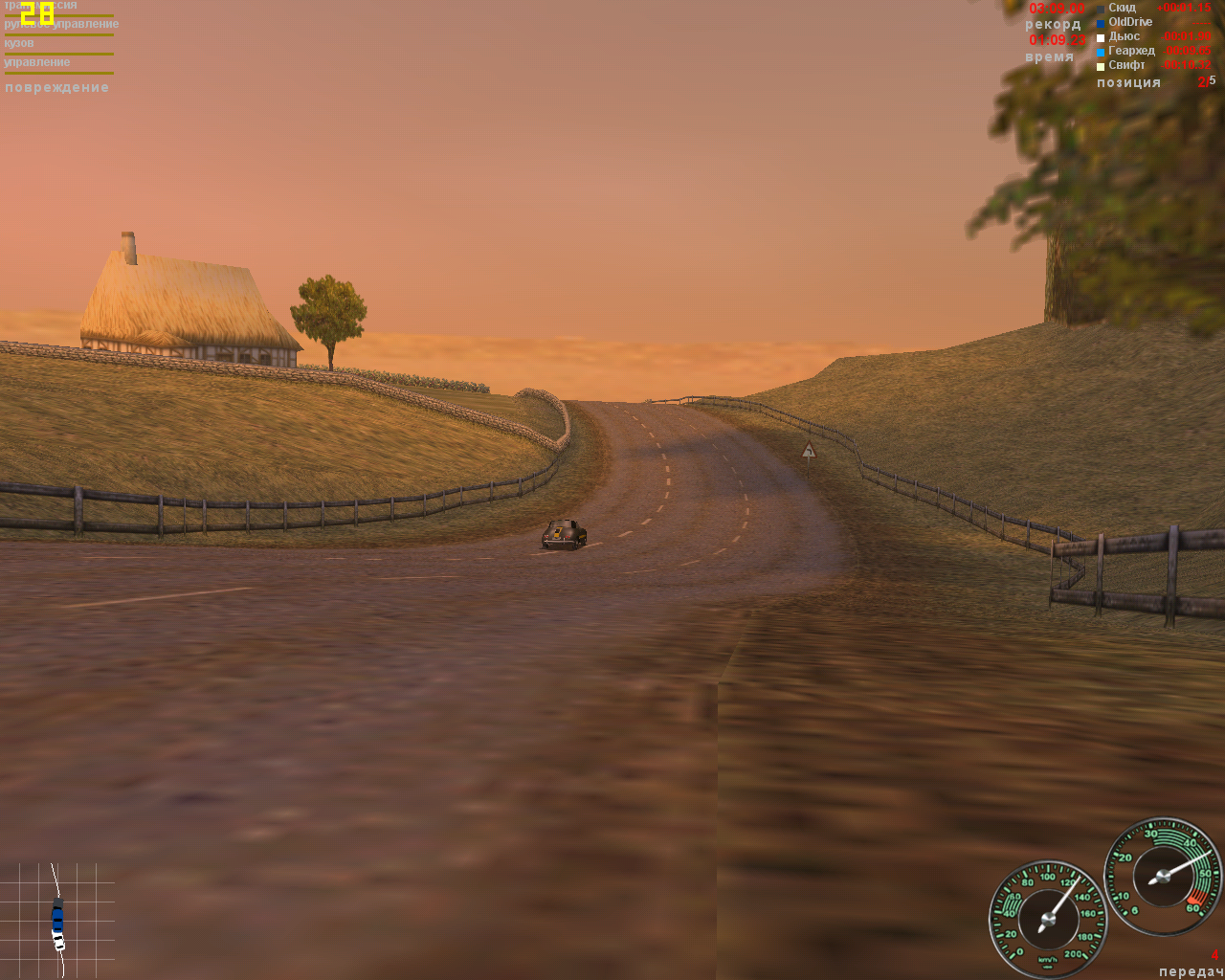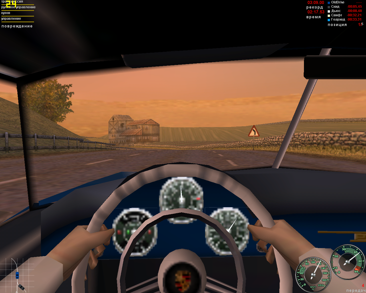 Дальше снижаю разрешение до 800х600 и все настройки на средние. Вроде бы немного побыстрее, но почти незаметно, зато качество графики существенно ухудшается. Процессор работает на пределе, так что в Porsche Unleashed в данном случае можно ставить все на максимум.