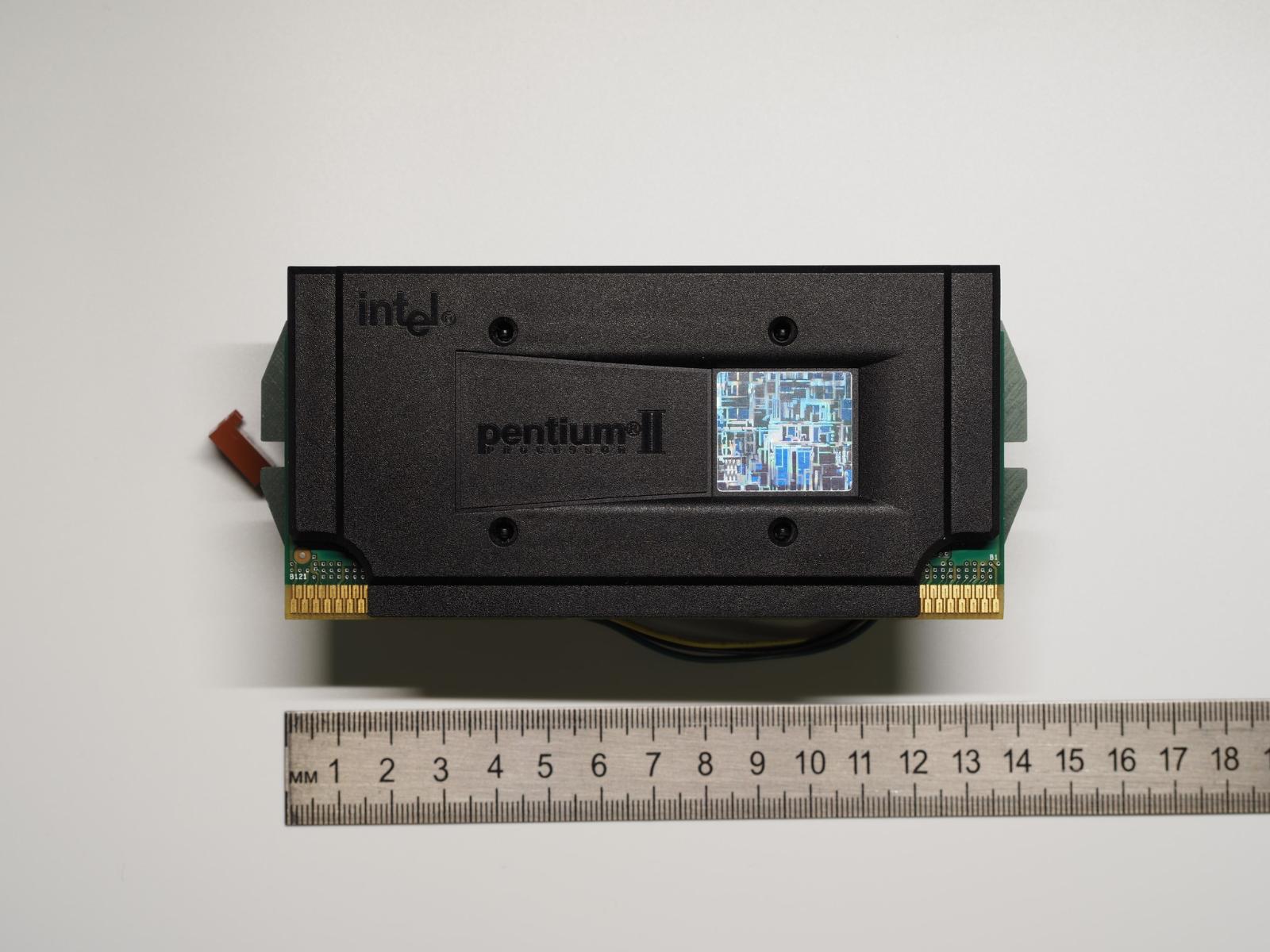 2. Pentium II 350 Slot 1 – далеко не топовая модель, найти просто и стоит вменяемых денег. Можно и Pentium II 400 попробовать, но будем считать, что уже есть разогнанный Celeron 300A, так что нам нужно что-то помедленнее, а на эту роль Pentium II 350 подходит идеально.