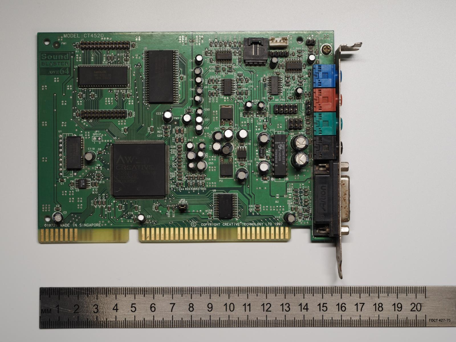 А вишенкой на торте, безусловно, будет звуковая карта. Чего уж душой кривить, чуть ли не самой желанной картой для ретро-ПК и DOS игр является Creative AWE64. На рынке их пока достаточно много, купить не особо сложно, да и цена не так кусается, как на представителей более старого поколения – AWE32 или SB Pro. Конечно, простор для выбора тут огромен – и ESS разные и Crystal и Yamaha, но почти все альтернативные карты будут иметь какие-то особенности, с которыми, порой, не захочется иметь дело – что-то надо будет настраивать полностью вручную, т.к. оно не PnP, а это уже не всякому по силам, что-то потребует подключения по кабелю SB-линк, а его еще найти надо или спаять самому, что тоже не всегда возможно по разным причинам. В общем, пусть звук нам дает самый яркий представитель от Creative.