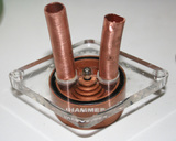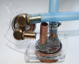 Самой большой сложностью был отказ от использования шлангов меньшего диаметра! Выход помпы имел очень как раз диаметра для шлангов в 10мм. Пришлось его переделать! Тем же способом, что и водоблок. Не долго думая, обезжирил поверхности помпы, зачистил наждачной, чтоб контакт был крепче. Приладил на временный крепеж из проволоки отрезок медной трубы и склеил!
