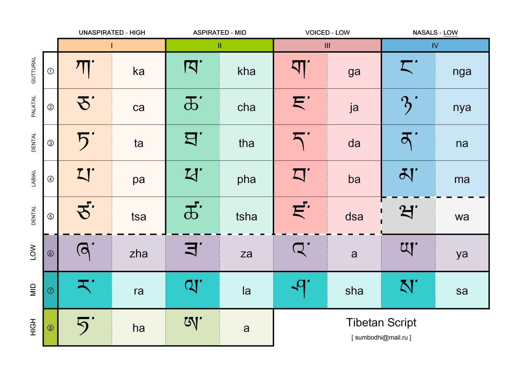 Тибетская письменность. Слоговая азбука. Согласные буквы.