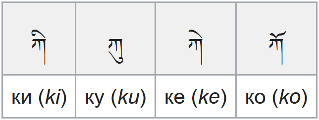 Гласные звуки в слоге. Тибетская письменность.