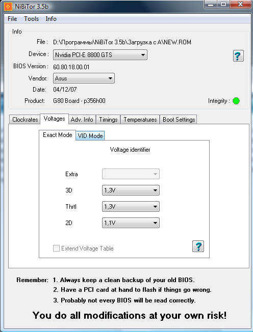 <br/><br/>В прошлый раз я писал о возможности понижения тактовых частот видеокарты ASUS EN8800GTS методом модификации BIOS. Об этом можно почитать тут: http://people.overclockers.ru/Kalpazan/record1.
