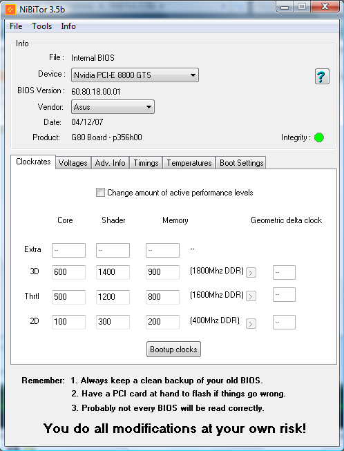 В прошлый раз я писал о возможности понижения тактовых частот видеокарты ASUS EN8800GTS методом модификации BIOS. Об этом можно почитать тут: /blog/Kalpazan