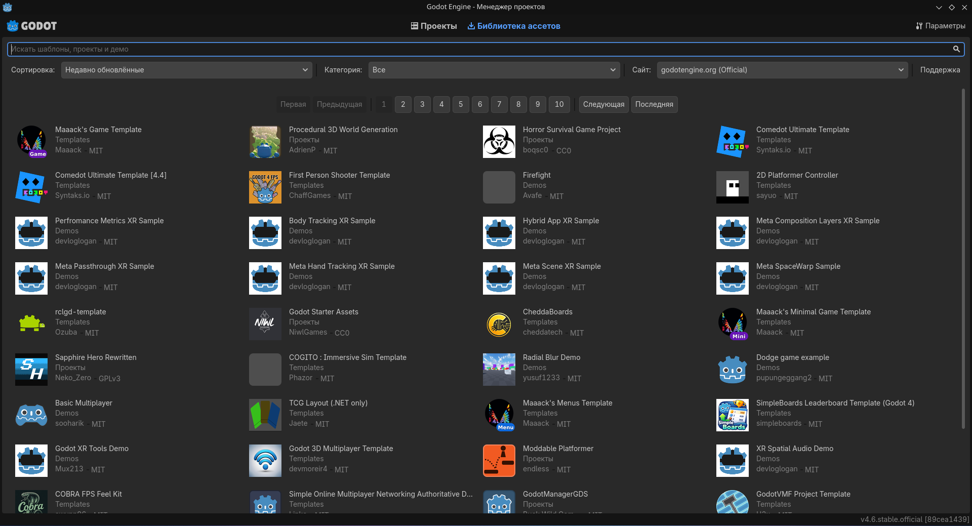 Ложь. Сразу после запуска Godot можно переключиться на вкладку «Библиотека ассетов» (в Godot 3 — «Библиотека шаблонов») и выбрать себе необходимые шаблоны и ассеты.