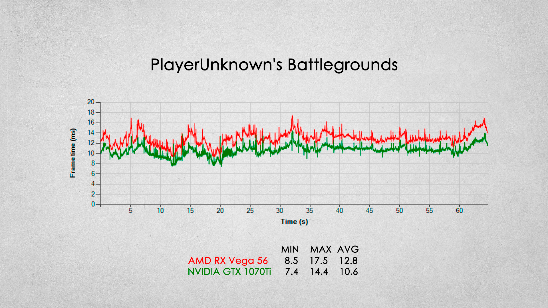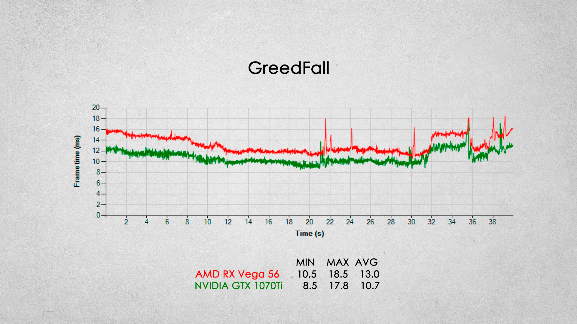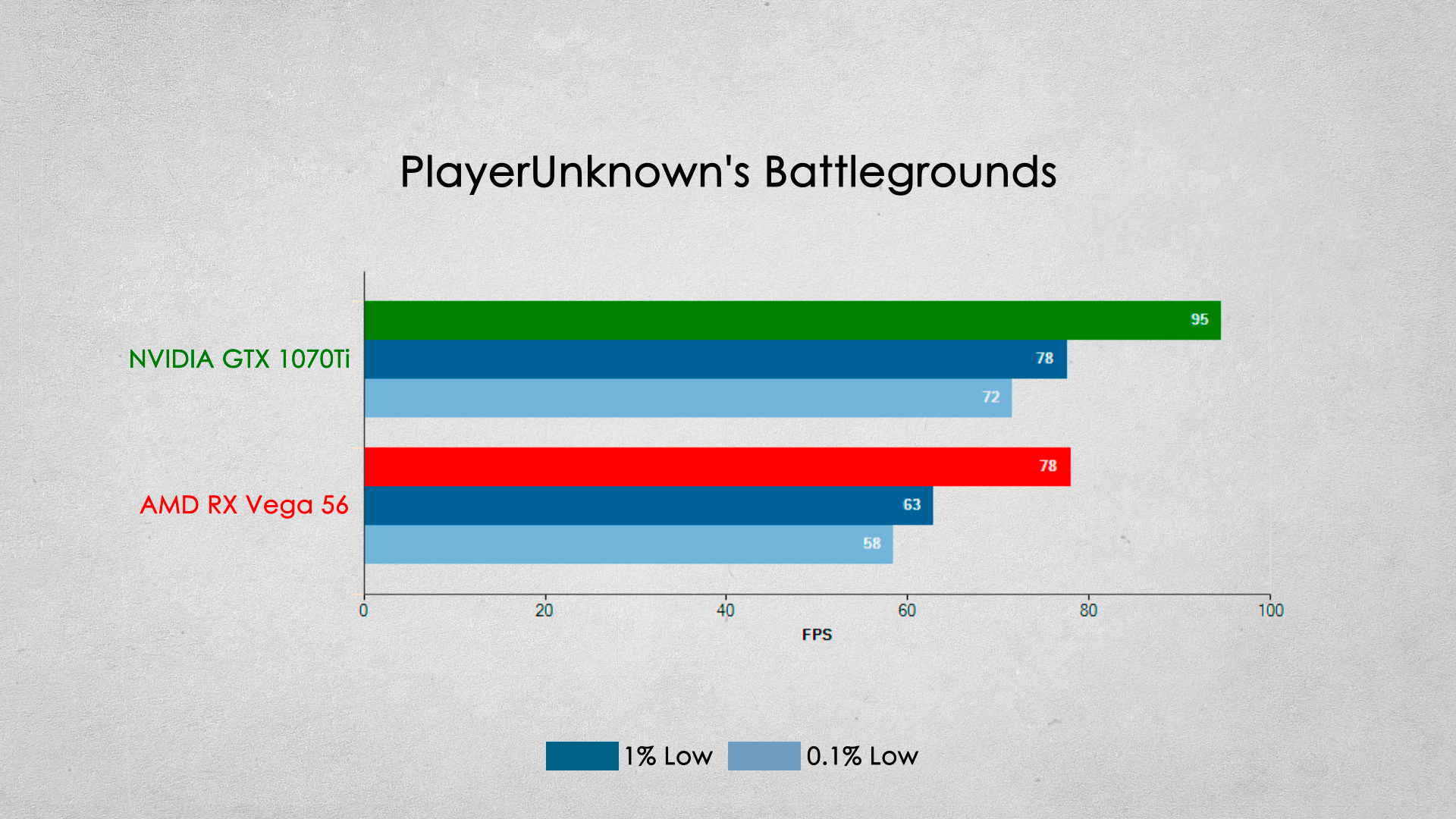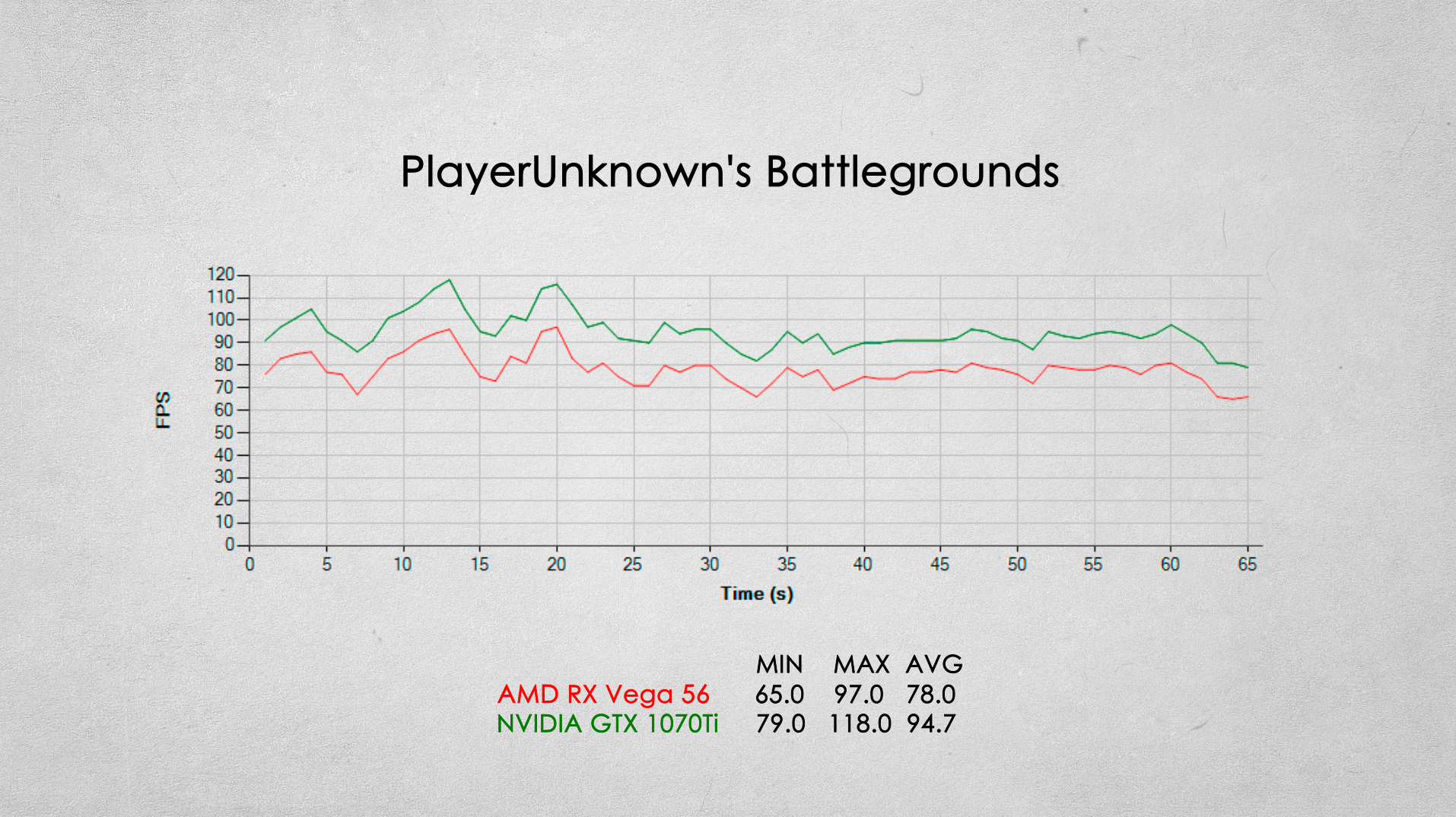 Наверное одно из самых серьезных игровых поражений видеокарты от AMD. Видеокарта GTX 1070Ti опережает соперника примерно на 20% по среднему fps.