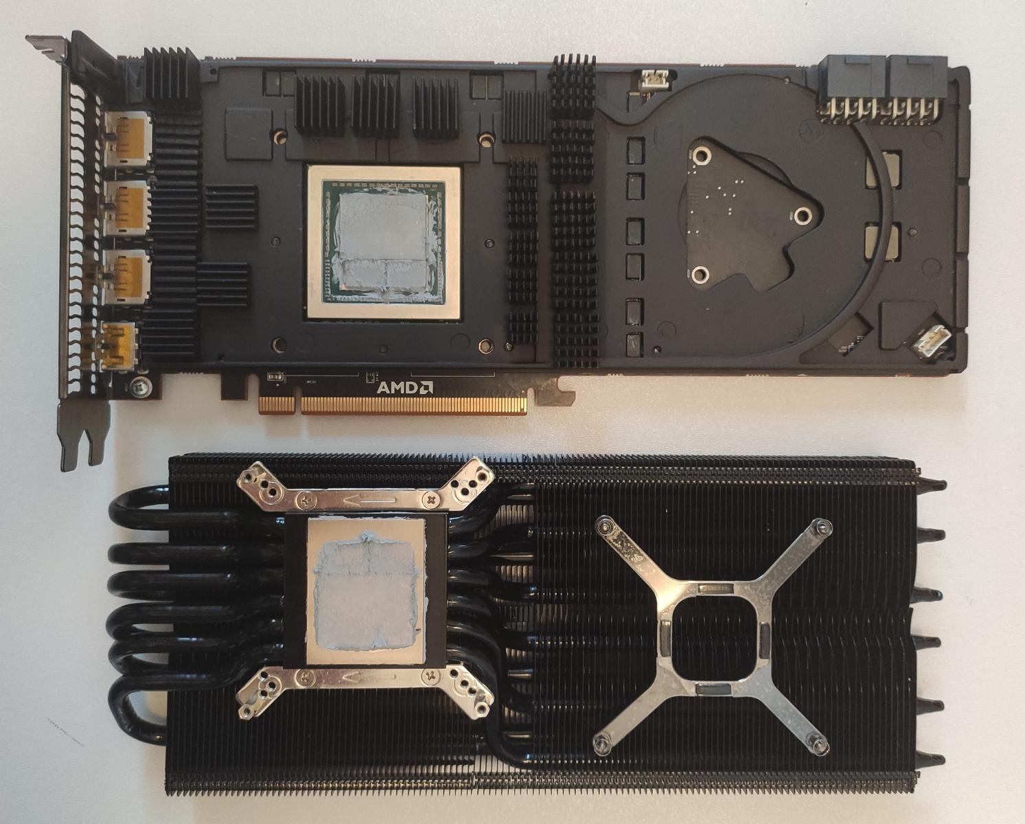 Помимо восстановления работы турбины была заменена система охлаждения, что несколько увеличило стоимость видеокарты, на Авито было куплен радиатор MORPHEUS II CORE EDITION от Raijintek за 4000 рублей. Что-то подобное я уже делал с видеокартой Vega 64.