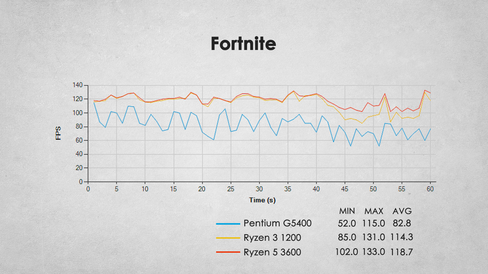 Тут мы видим практически паритет по среднему FPS, и только чуть-чуть Ryzen R3 1200 опережает Pentium G5400, зато редкие и очень редкие события, которые отражают плавность геймплея, отличаются уже значительно. Данная игра очень требовательна к производительности видеокарты и даже замена на Ryzen R5 3600 практически никак не влияет на FPS. Четырех полноценных ядер вполне и достаточно. Единственное серьезное отличие - это сама игра, и уровни грузятся значительно быстрее на Ryzen R 3600, вот прям значительно быстрее.