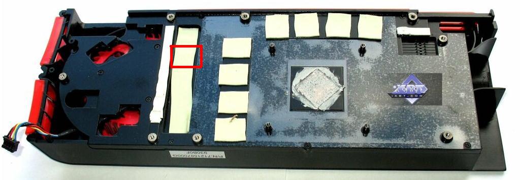 Интересное место отмечено красным квадратом - здесь явно лишний кусочек термопрокладки: