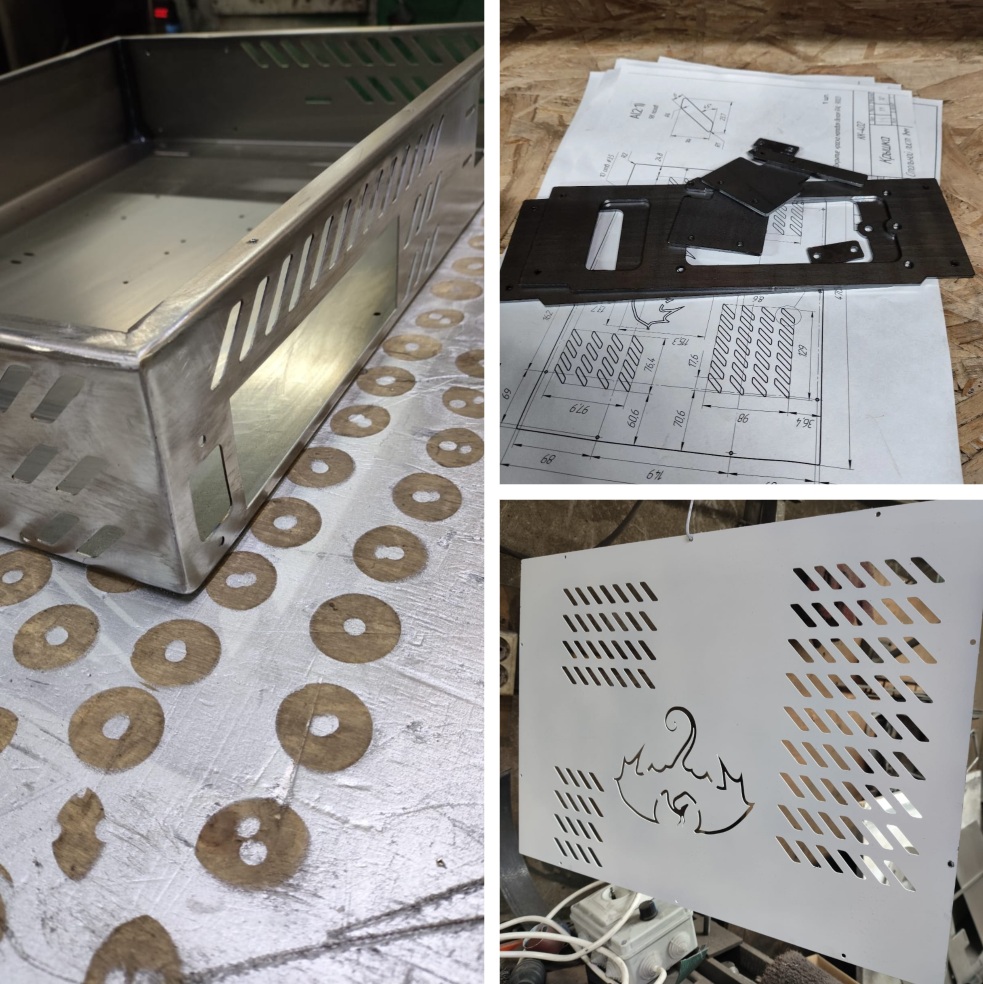 С изготовлением повезло: оказалось, что знакомые коллеги по работе занимаются изготовлением мангалов на заказ, то есть могут делать резку, гибку, сварку, ну и о покраске договорились. Через коллегу передал им чертежи и решили вопрос по цене. Цена приятная - 4300 рублей, думал будет дороже для кастомного корпуса. Проблем на стадии изготовления не было, в процессе мне присылали фото промежуточных этапов. Очень благодарен парням за работу, всё сделали хорошо.