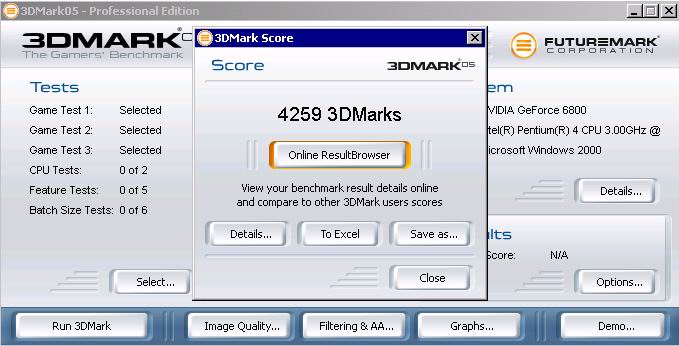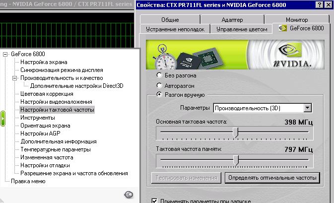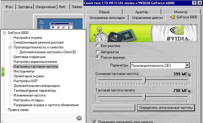 Для проверки эффективности использовал определение оптимальных частот драйвером и игровые тесты 3DMark05.