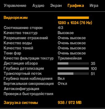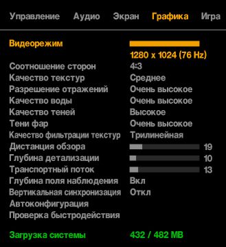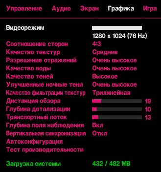Настройки были полусредними. Почему-то не снимался скриншот. Дальность видимости 1600. Использовался RAM-диск на 2,3 ГБ.<br/>